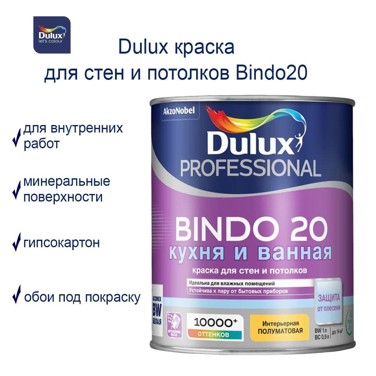 Dulux Professional BINDO 20 — высококачественная водно-дисперсионная интерьерная краска на акриловой основе, создающая износостойкое покрытие с благородным полуматовым эффектом. Подходит для окрашивания стен и потолков в помещениях с повышенной эксплуатационной нагрузкой. База BC предназначена для машинного колерования в насыщенные и тёмные оттенки, обеспечивая точную цветопередачу и равномерное покрытие.