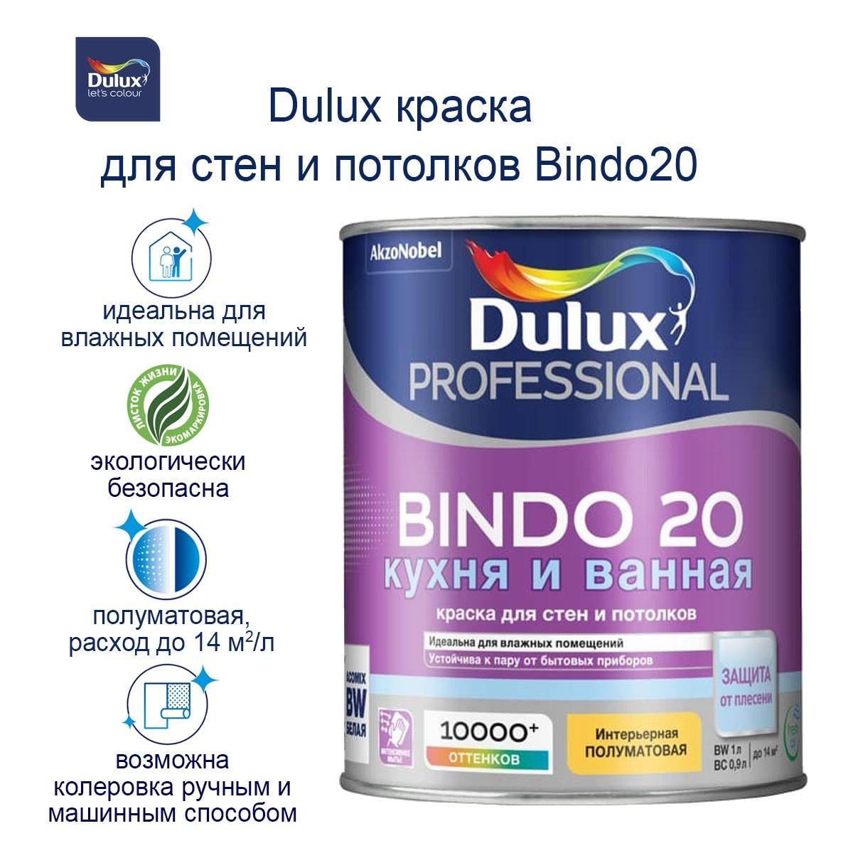 Dulux Professional BINDO 20 — интерьерная акриловая краска с полуматовым финишем, обеспечивающая высокую укрывистость и ровное, эстетичное покрытие. Эта краска сочетает в себе преимущества матовых и глянцевых красок, создавая приятный мягкий блеск, который легко моется и устойчив к истиранию.