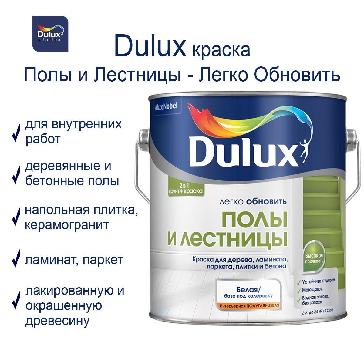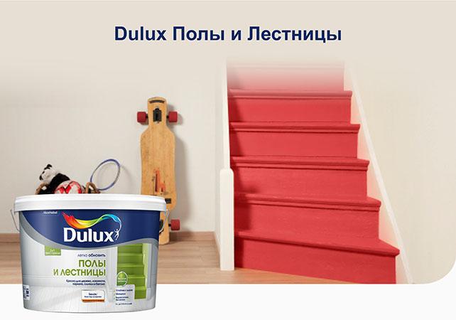Dulux "Полы и Лестницы" — это прочная и износостойкая водно-дисперсионная акриловая краска с полуглянцевым финишем, специально разработанная для окрашивания деревянных и бетонных полов, лестниц и других горизонтальных поверхностей, подверженных нагрузке.